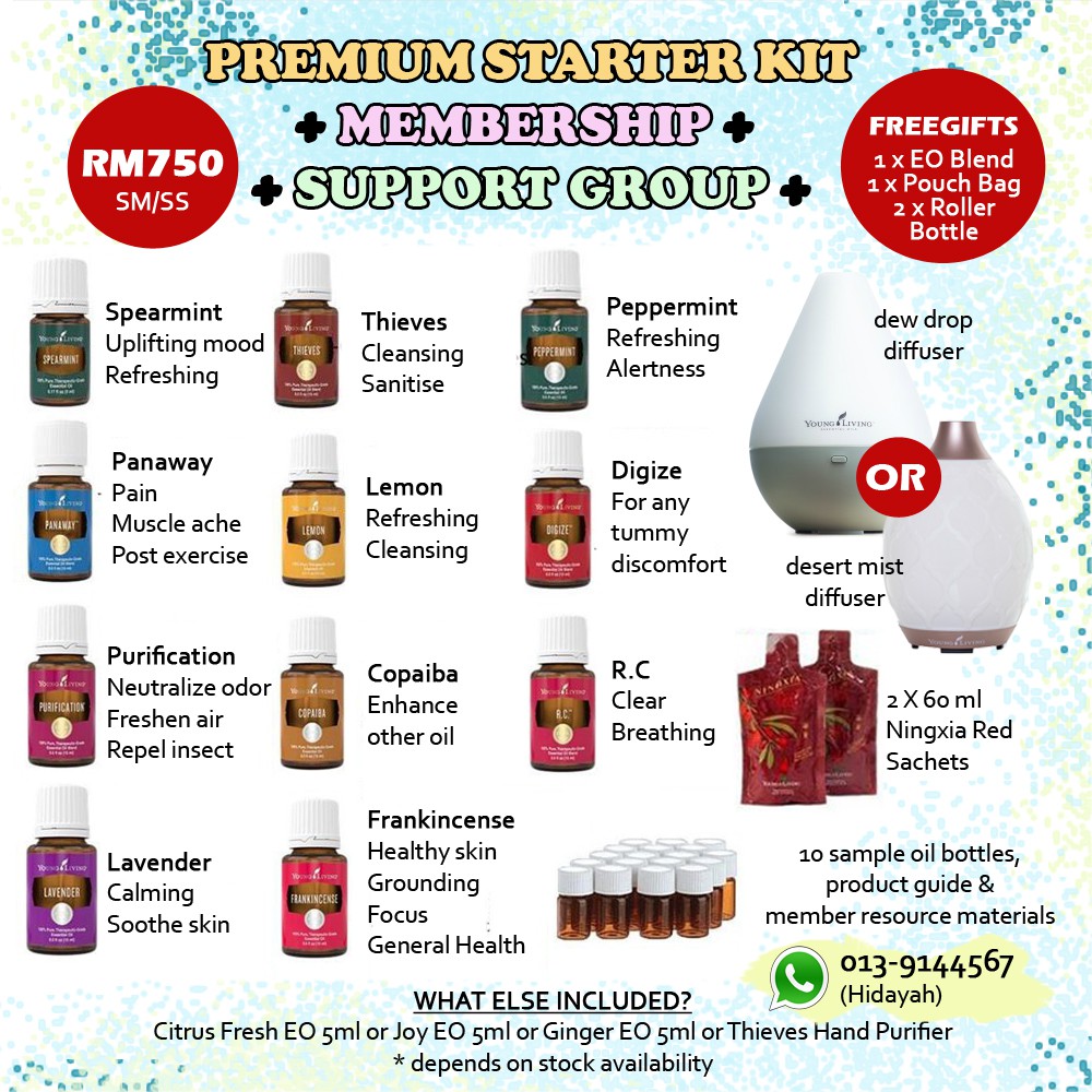 Chat Me First Young Living Premium Starter Kit With Dew Drop Diffuser Or Desert Mist Diffuser Shopee Malaysia